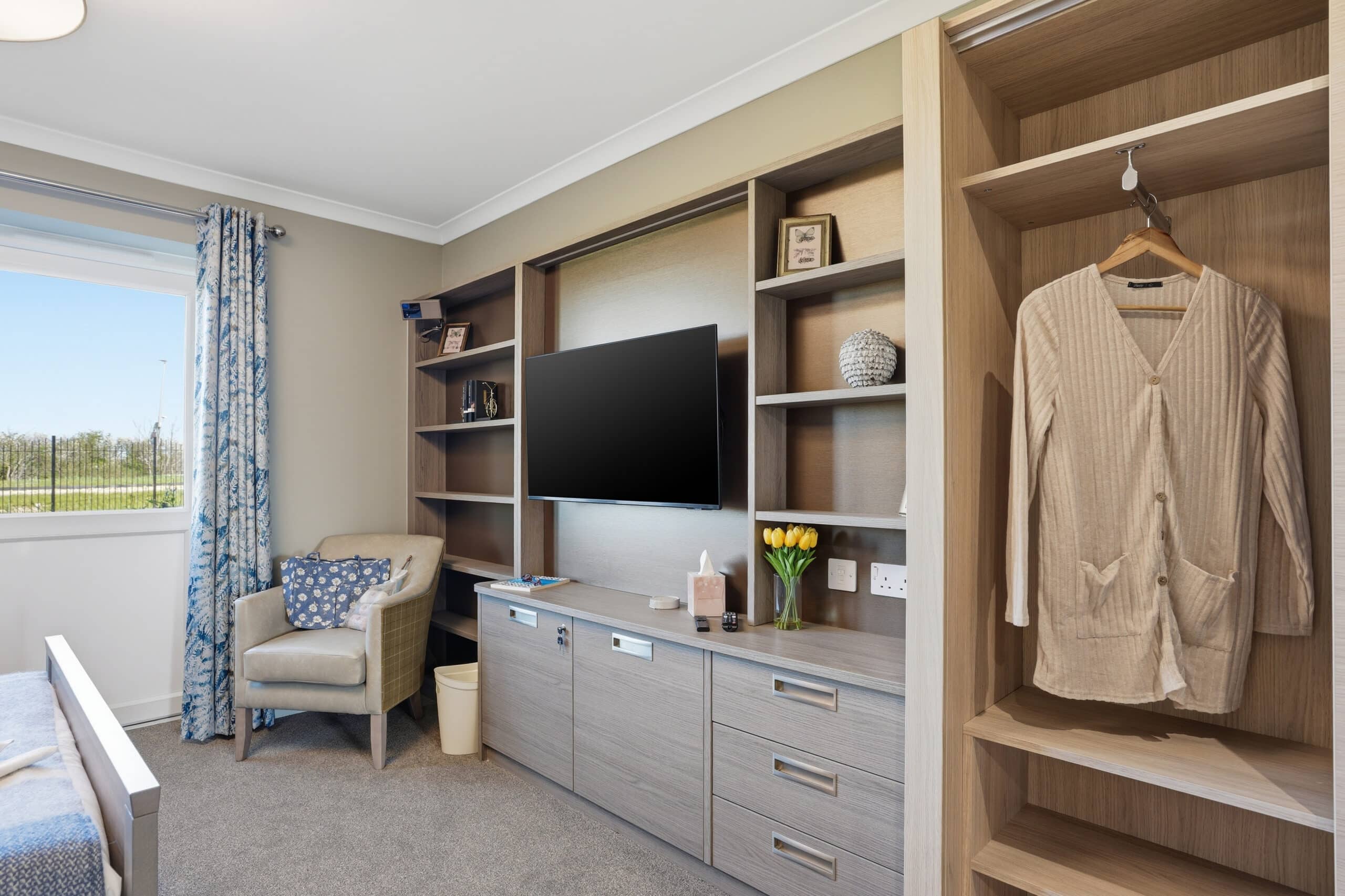 - Fully fitted, spacious bedroom with adjustable bed, smart TV, mini fridge and en-suite wetroom