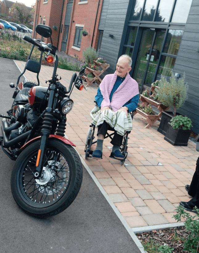 At Furze Field Manor, we’re always looking for ways to create meaningful experiences for our residents, and last week was no exception. Gordon, one of our residents, has a lifelong passion for motorcycles, especially classic models, and often shares fond memories with our care team about the bikes he has owned and ridden in the past.