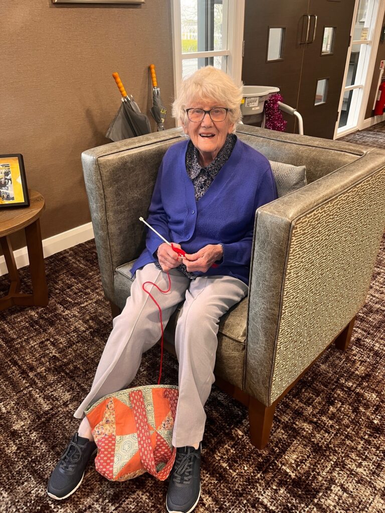 The club offers a warm and welcoming space for residents to come together, share their favourite patterns, exchange tips, and enjoy the simple pleasure of crafting in good company. Leading the way is our very own Jean, who has proudly taken on the role of the club’s first chair. Jean brings not only her knitting expertise but also her love for Neil Diamond – his iconic tunes providing the perfect backdrop for a relaxing and creative atmosphere.