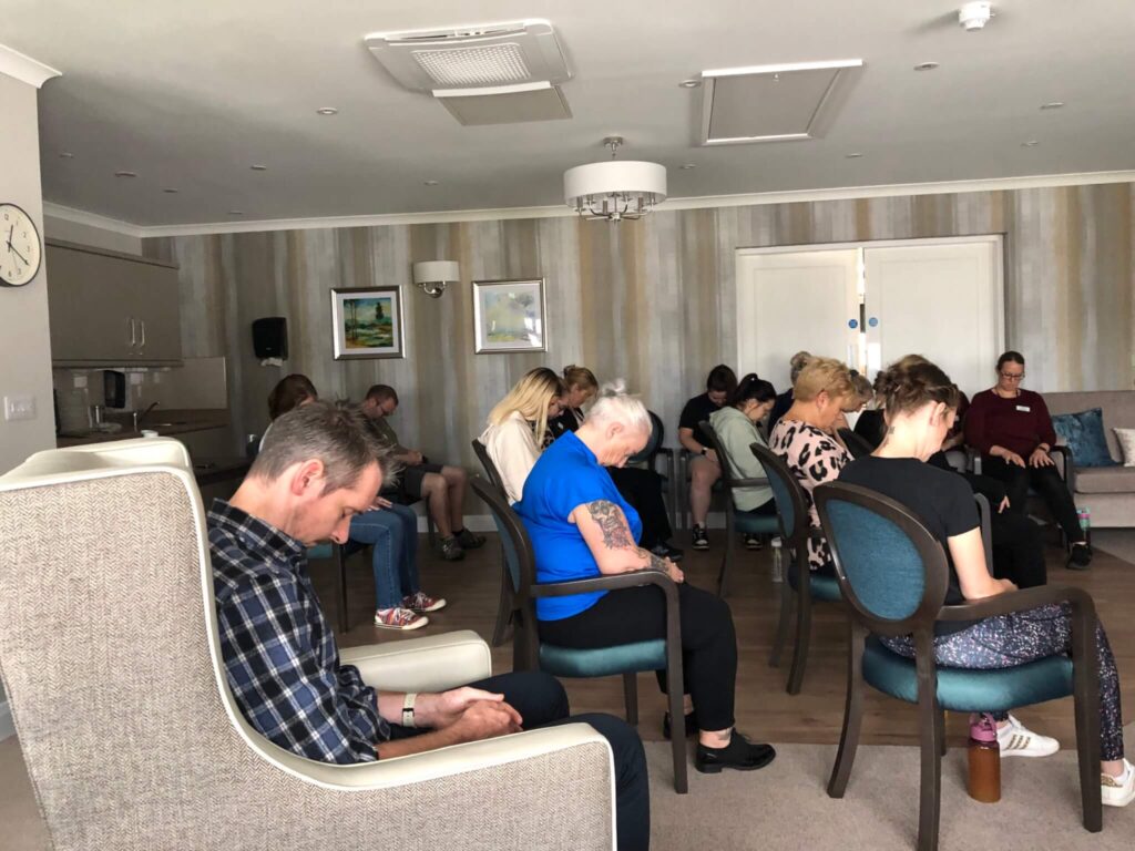 Katy Hague, Chief of Staff, recently hosted a specialised wellbeing session for our team as part of their induction training. The session featured meditation, breathwork, and gentle movements to help staff relax and recharge – essential for balancing the demands of working in care.